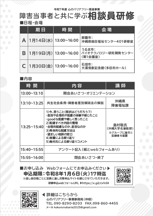 障害当事者と共に学ぶ 相談員研修